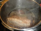水で冷やして、圧が下がったら、ふたを開けて、ネギと生姜を取り除く。