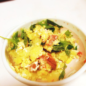 粗熱がとれたらマヨネーズと刻んだシソを加えて完成