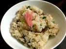 鯖の骨やひれなど固い部分を取り除いて、さっくり混ぜる。