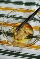 フォークで混ぜると滑らかになります。但しプラの容器ならOKです。瓶なら湯煎がお勧めです。