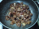 ③の湯切りした肝に調味料(一味唐辛子以外)を入れ強火で加熱。 落し蓋をして強火に近い中火で煮る。