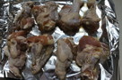 IH グリルの受け皿に水を少量(分量外)入れる。網の上に2を載せ、火力中で20分加熱する。※アルミ箔で焼き色を調節する。