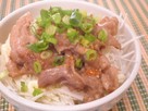 ご飯にキャベツの千切り&マヨをかけ、焼いたお肉をのせれば肉丼の出来上がり。