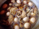 手羽先がかぶるくらいの水と、調味料を加え沸騰したら、アクを暫くすくっていきます。ゆで卵もプラ〜す。