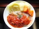 キャベツは1/8、くし形に切り、じゃがいもは1/2、人参も大きめに切って茹でるか、蒸しておく。