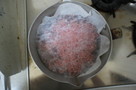 干ししいたけを戻したお水で、ひき肉を煮ます。