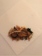 具の粗熱が取れたら包みます♪下の方に具を置いて♪