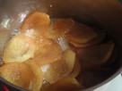 皮を軽く絞って、重さをはかる。皮の重さの80%の量の砂糖と一緒に鍋に入れ、蓋をして弱火で煮る。