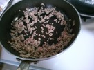 フライパンにごま油をひいて熱し、挽き肉を炒める。