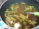 鍋にお湯を沸かして茹でたふきとこごみを入れましょう〜
