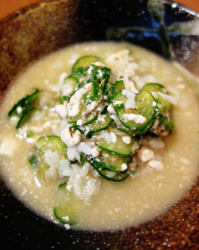 味噌を加えてよく混ぜ,氷水をはったボウルに鍋を入れ水を替えながら冷やす。