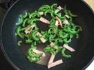 フライパンに油を熱し、切ったハムと2を入れて炒める。