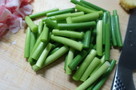 豚バラ、にんにくの芽は3cmの長さに切ります。
