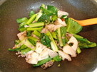 れんこんにまんべんなく油が回りなじんだら小松菜を投入、さっとひと混ぜし