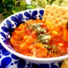 材料はこんな感じ。お好きな野菜やベーコン、チキンなど身近な材料で。トマトはホール缶の方が甘味があるような感じ。