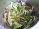山東菜は5cm程の長さに切って、洗って水をきる。