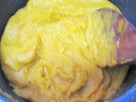 3を鍋に戻し、卵黄を加え混ぜてから火にかけ練ります。