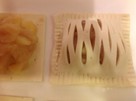 残りのパイ生地はローラーカッターで切れ目を入れるか、包丁で4本並行に切れ目を入れ、かぶせて周囲をフォークで押さえる。
