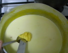 牛乳2カップを入れコンソメ、砂糖で味付け。沸騰手前で、すいとんをスプーンとナイフを使い落とし入れる。