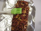 焼きあがったら粗熱をとり、型から出し、ラム酒をはけでまんべんなくぬります。アルミ箔に包んで冷蔵庫で1日寝かせます。