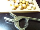 【銀杏】殻を割り実を取り出します。ぎんなん割りがなければ、3のキッチンバサミのギザギザの所で割ります。他はトンカチ♪
