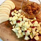リンゴをスライス8-10枚を残し、残りを半分ずつ角切り&すりおろす。面倒な方は全部すりおろし(orミキサー)でOK!