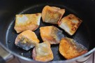 鍋にサラダ油を熱し、中火で鮭を焼いていく。全体に綺麗な焼き色がついたら、鍋から取り出しておく。