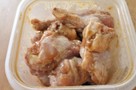 手羽元を保存容器に入れ、醤油麹を加えてまんべんなくまぶし、蓋を閉める。今回は冷蔵庫で2晩寝かせたものを使用。