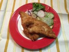 お皿にのせ、野菜サラダを添えて出来上がり(*^^*)です♪