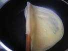 一番上(表面の部分)は大きめのフライパンで1枚焼いて下さい。 大きい生地で全体を覆い綺麗に見せるためです。