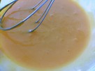 卵白を冷蔵庫から出し砂糖大さじ3杯を2~3回に分けて途中で加えながら手早くしっかりと角が立つメレンゲを作ります。