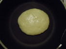 フライパンを再び火にかけて、生地を入れる。(お玉一杯分くらい)