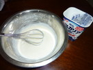 ヨーグルトをボールに入れ、泡立て器で滑らかになるまで混ぜます。