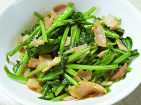 「あと一品に♪菜花とベーコンのシンプル炒め」( レシピID : 2596773)のバター醤油バージョンです。