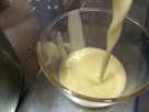 ①が人肌になったら、②を少しずつ加えて混ぜ合わせる。