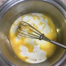 〜フィリング〜鍋に卵黄と砂糖を入れ、泡立て器ですり混ぜる