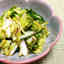 1がしんなりしてきたら、水分をしっかりしぼり、ポン酢しょうゆとかつお節を混ぜ合わせる。