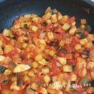玉ねぎに少し火が通ったらズッキーニと茄子を入れて炒める。