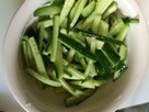 刻んだきゅうりを皿に移し軽く塩(分量外・一つまみ程度)を振り混ぜておきます。