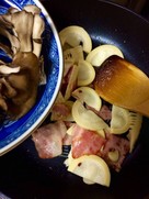 ベーコンはじっくり炒める、醤油は鍋肌から。香ばしさで美味しさが一層増します。舞茸はすぐ火が通るので強目の中火でサッと炒めて。