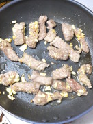 引っくり返して牛肉に半分ほど火が入るていどまで短時間だけ焼く。