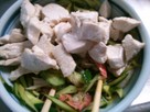 更に、冷ました鶏肉を、ほぐしながら混ぜる。