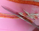 包丁の刃を立てて、軽く胡瓜のイボを削り取ります。