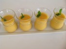 ⇧固まったプリンに、マンゴーピューレを掛けました。