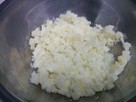じゃがいもは空気にさらすと色が変わるので,②③の過程で長く放置することのないよう気をつけましょう。切った分はすぐにマッシュポテトに混ぜ込むと,空気に直接触れないので変色を防げます。