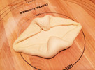 上下のトンガリ部分を折り曲げて中央に持ってくる。真ん中にはウィンナーを乗せる。