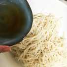 ほんの少し麺つゆをかけることで、麺がほぐれやすくなって、辛さも和らぎます。