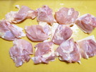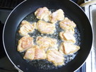 フライパンの底から5mm位の所までサラダ油を入れて中火で熱し、3の鶏もも肉を1枚ずつ広げて並べて入れる。