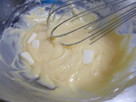 クリームチーズを混ぜる。(チーズが、固いようなら、前もって室温に出しておくか、レンジで数秒軟らかくしておく)