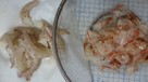 冷凍エビを流水で解凍します。